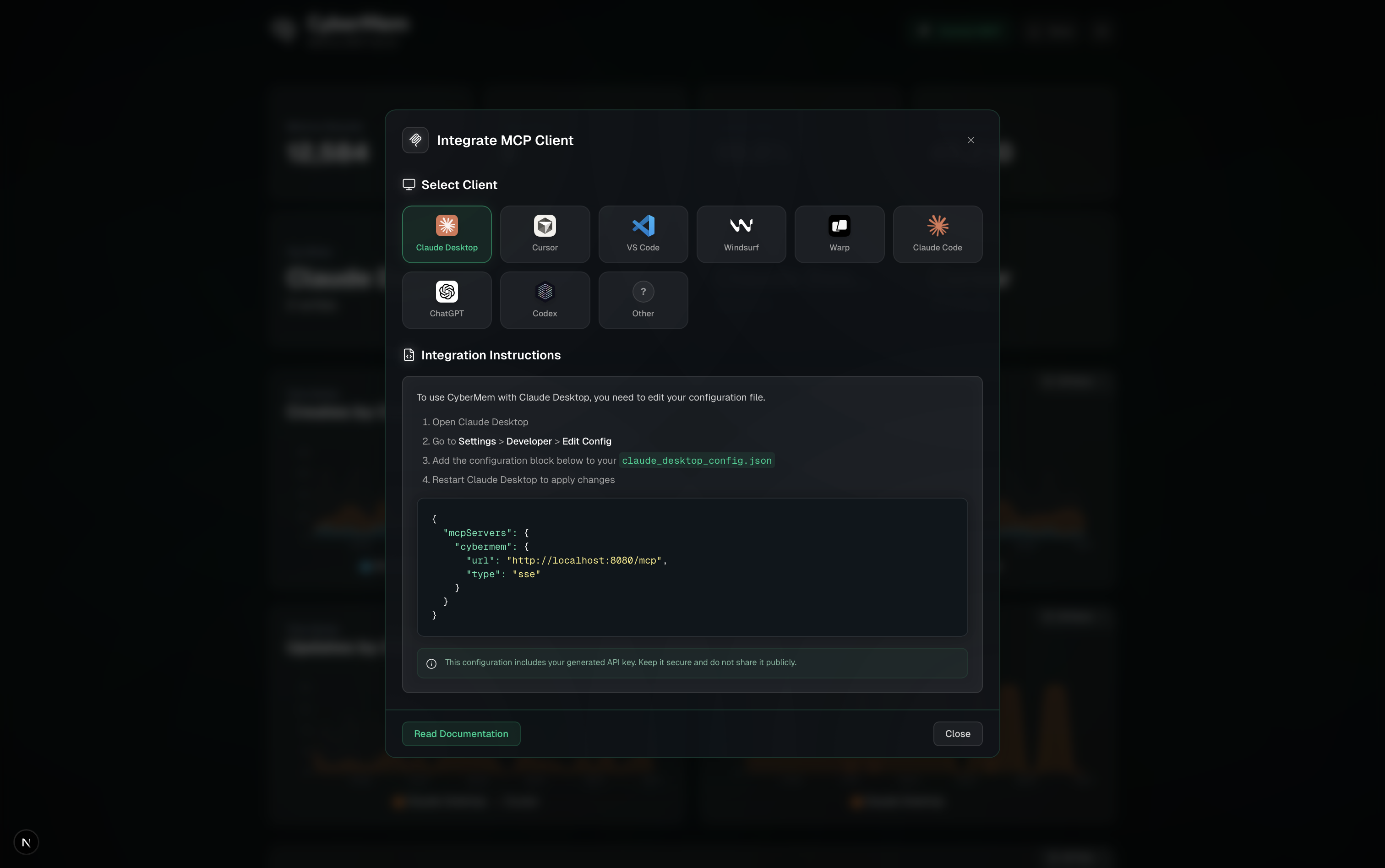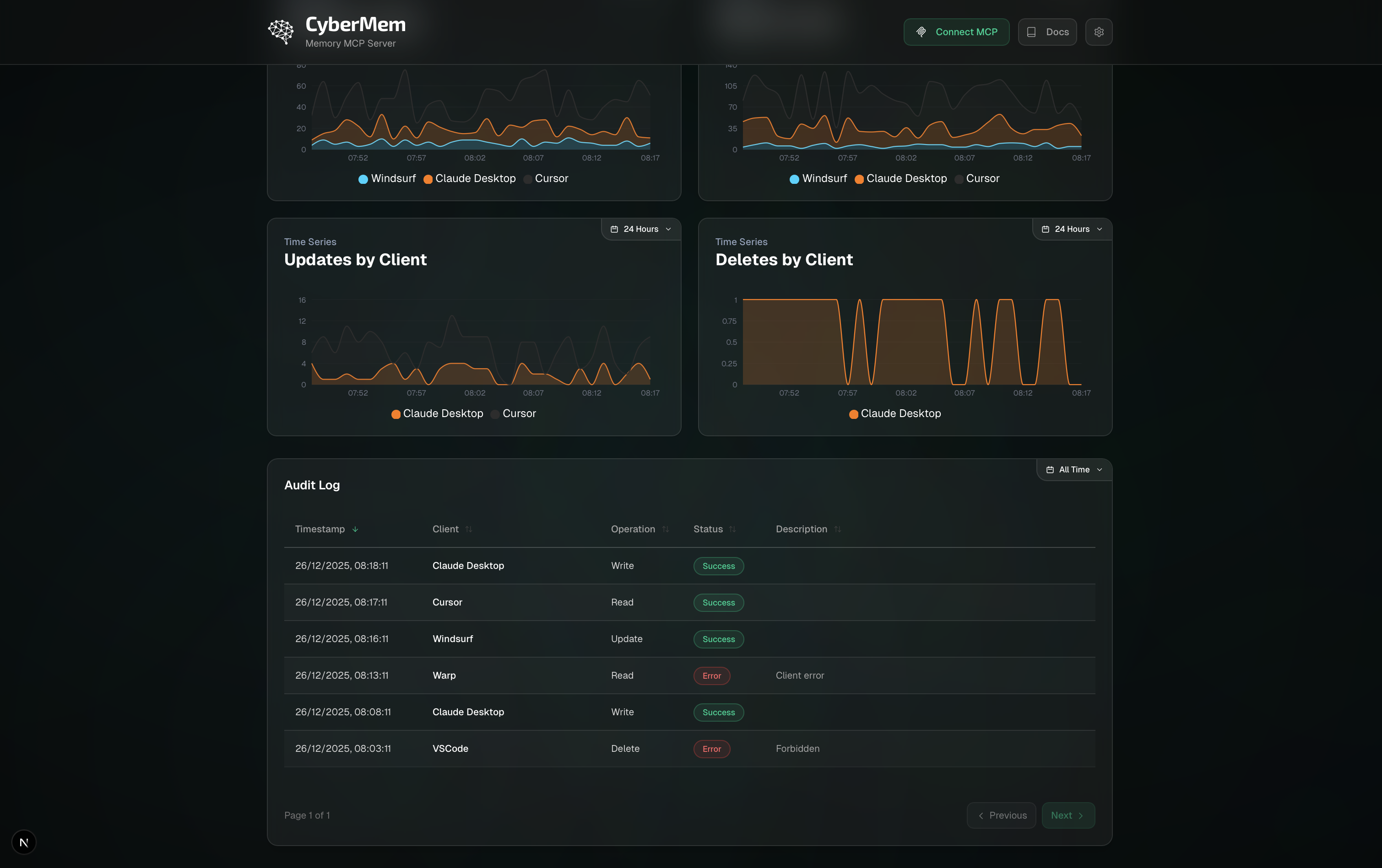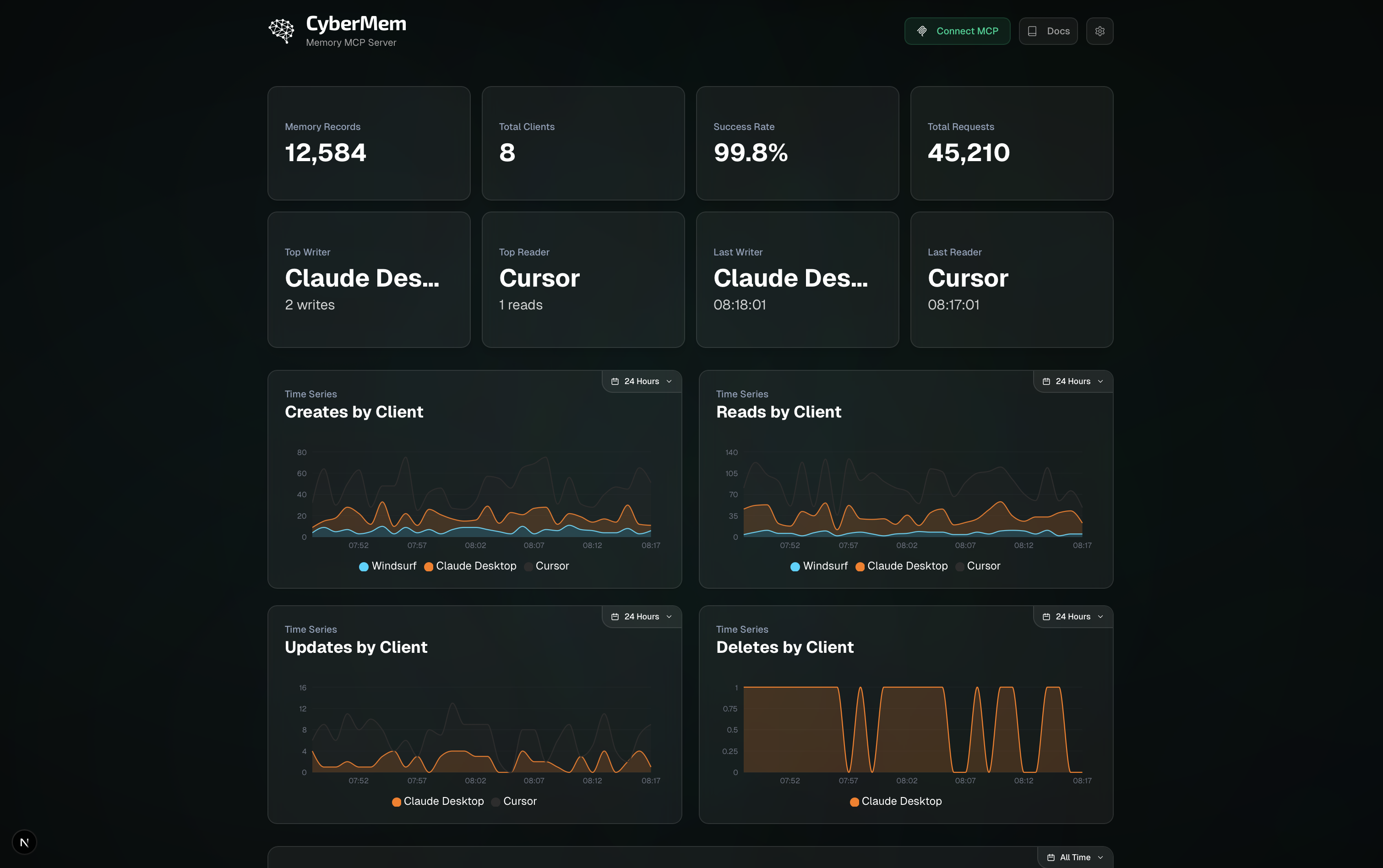 curl -fsSL https://cybermem.vercel.app/install | bashUse the MCP server or simple REST API to connect your agents.